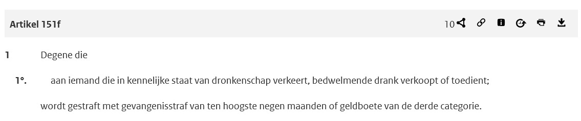 2. Want in het Wetboek van Strafrecht staat dat het strafbaar is om mensen die dronken zijn alcohol te geven: