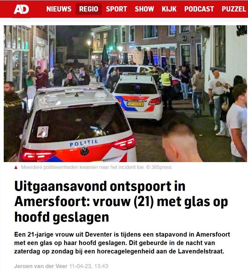 AD: Uitgaansavond ontspoort in Amersfoort: vrouw (21) met glas op hoofd geslagen